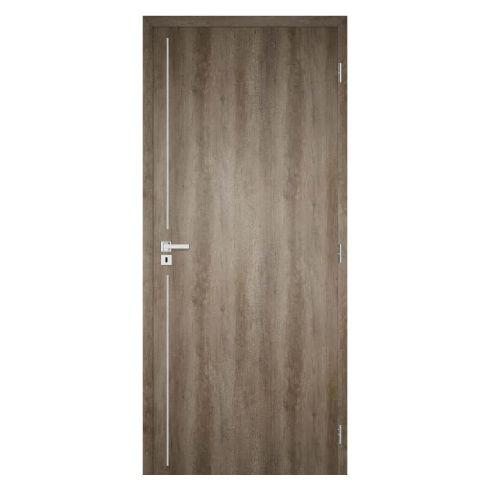 A LINE 7 intarziás CPL beltéri ajtó tokkal – egy függőleges alumíniumcsík a kilincs vonalában