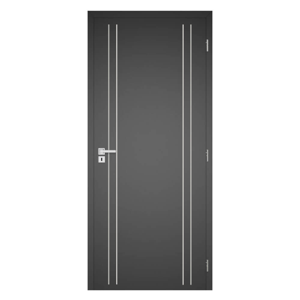 A LINE 9 intarziás CPL beltéri ajtó – 4 függőleges alumíniumcsík páros elrendezésben