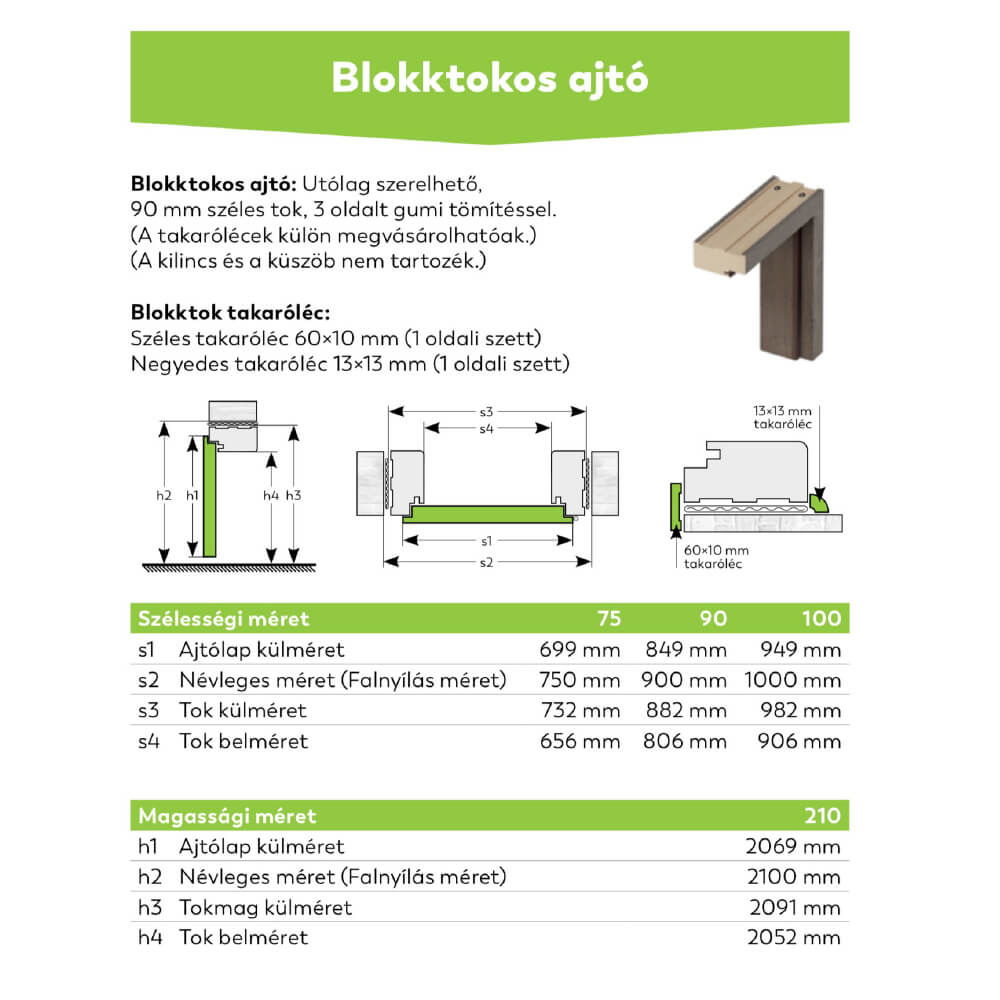 | Alapfelszereltség Blokktok (90 mm) | Csak ENDURO dekorfólia színekben rendelhető. LAMINOLACK ajtólap esetén nem választható. |