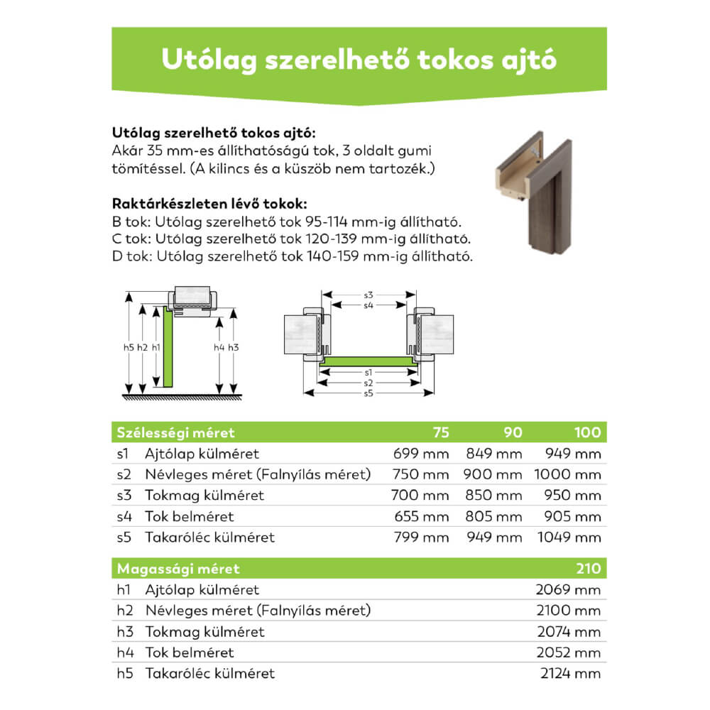 | Rendelhető átfogótokok | B–C–D átfogótok – választható méretek: B: 95–114 mm | C: 120–139 mm | D: 140–159 mm |