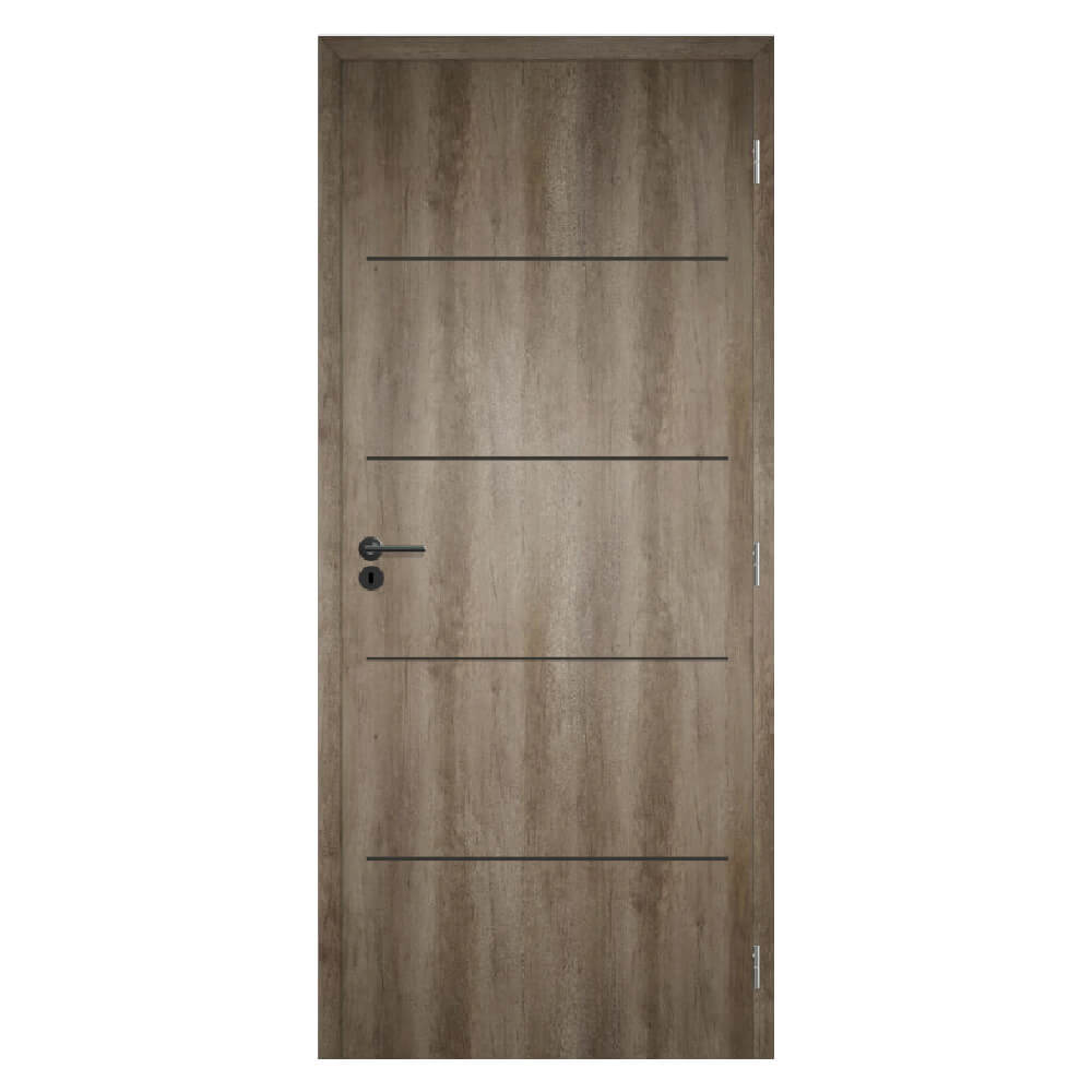 B LINE 5 intarziás CPL beltéri ajtó tokkal – 4 vízszintes matt fekete csíkkal