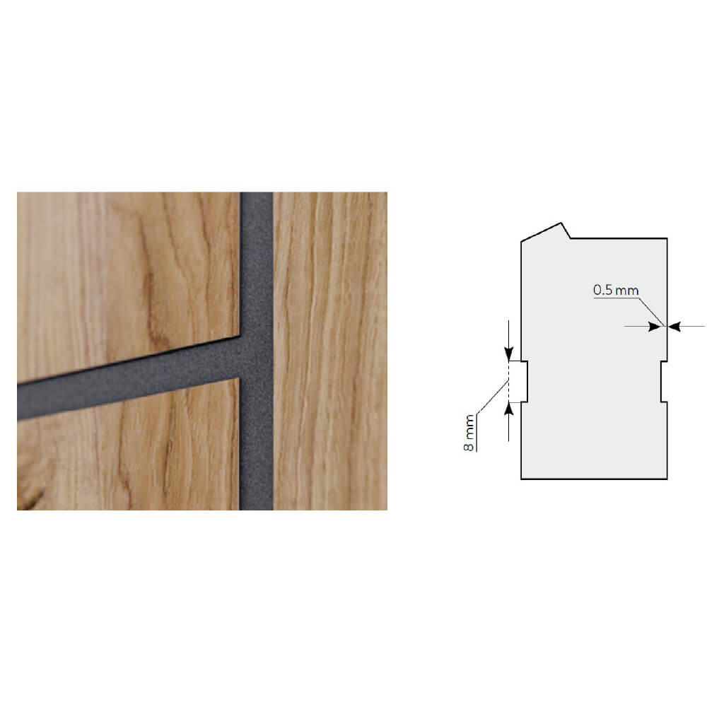 rendezett, harmonikus struktúrát ad az ajtólap felületének. Az impregnál fekete HDF frontlemez és a pontos