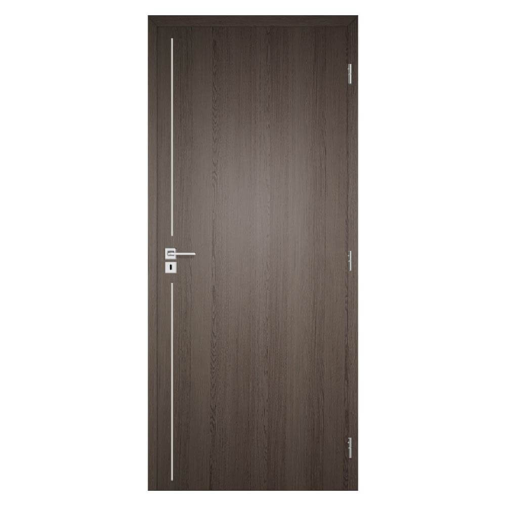 A LINE 7 intarziás beltéri ajtó – egy középen futó függőleges alumíniumcsíkkal